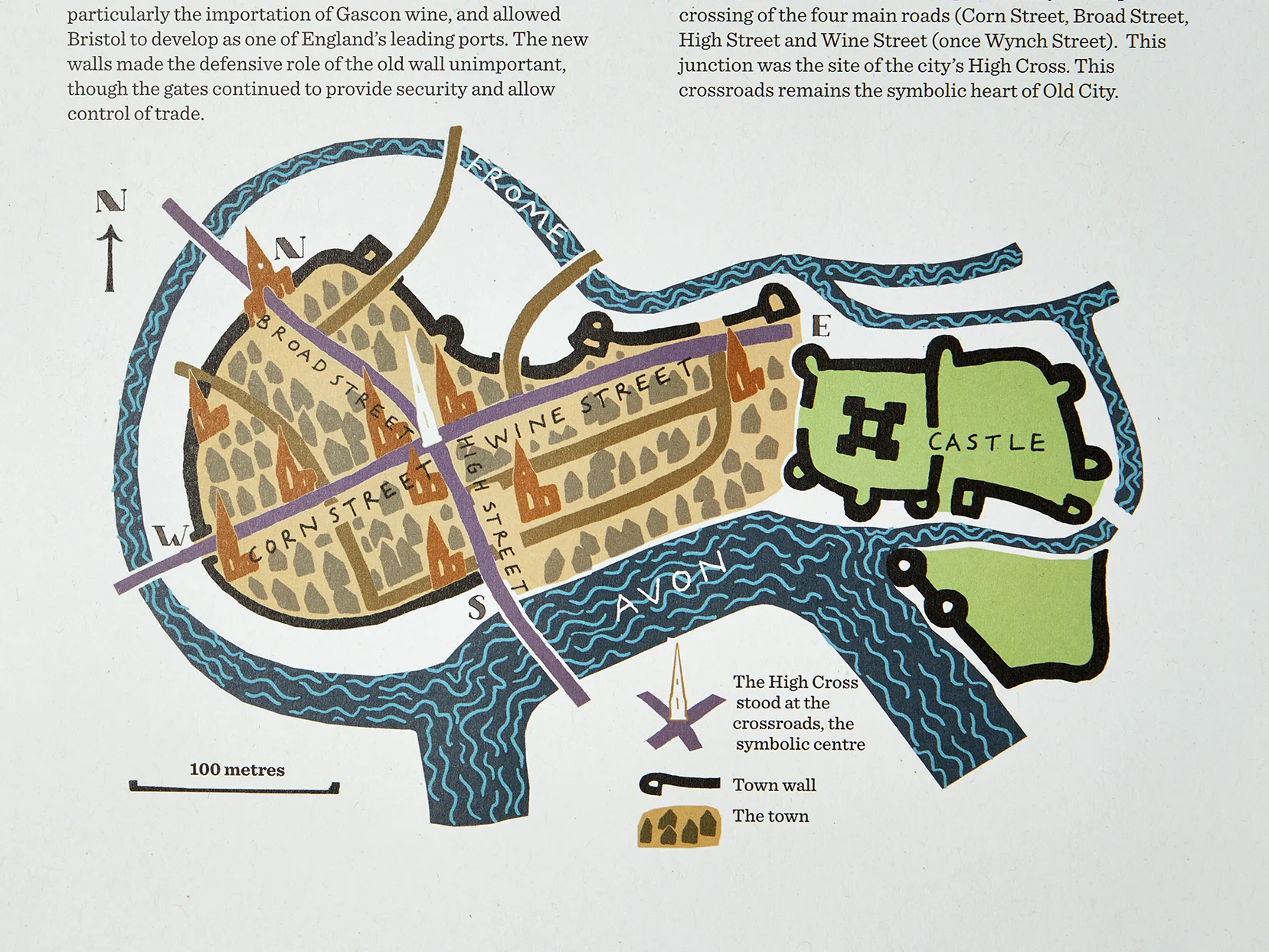 In collaboration the artist and printmaker Simon Tozer, the Bristol Old City Maps were designed and produced in partnership with local stakeholders and Bristol Civic Society.